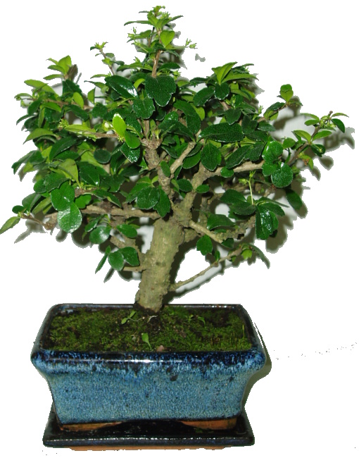 Součástí bonsaje je keramická miska i podmiska, kterou vidíte na fotografii.